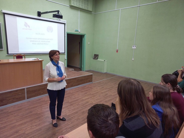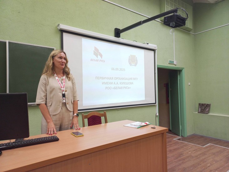 5 сентября 2025 года для первокурсников факультетов педагогики и психологии детства, иностранных языков, начального и музыкального образования была проведена презентация деятельности общественных объединений МГУ имени А. А. Кулешова. О деятельности первичной организации ОО «Белорусский союз женщин» студентам рассказала её председатель — декан факультета педагогики и психологии детства Е. А. Башаркина. О целях и задачах работы РОО «Белая Русь» первокурсники узнали от председателя первичной организации университета — заместителя декана факультета иностранных языков М. В. Заблоцкой. О планах творческого объединения «НЮАНС» (студия художественного слова) поведала его руководитель — заместитель декана факультета начального и музыкального образования Ю. В. Аленькова.