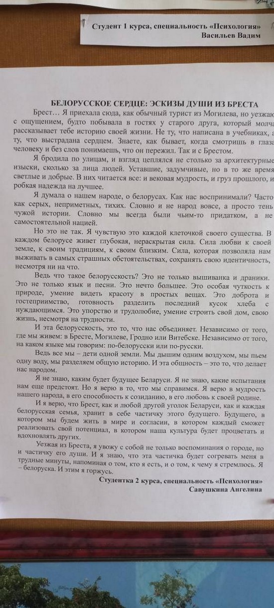 16 сентября 2025 года выставка пополнилась новыми работами студентов. Плакат «Сiла у адзiнстве» представила студентка 1 курса специальности «Психология» Строцкая София. На нём символическим языком показана Республика Беларусь как общий дом шести областей нашей страны. Студентка 4 курса специальности «Дошкольное образование» Иванова Елизавета принесла на выставку свою фотокартину «Вечерний город», посвящённую родному Могилеву.