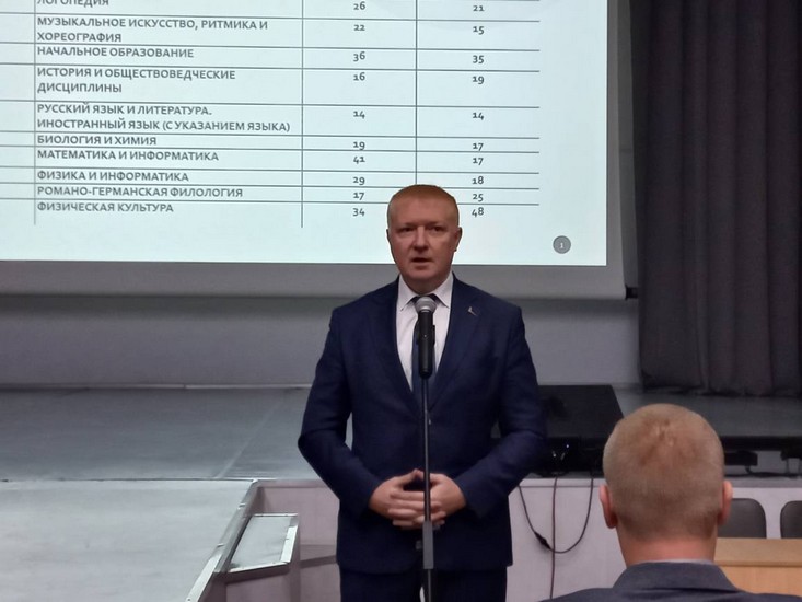 9 октября 2025 года для студентов 3-4 курсов факультета педагогики и психологии детства была организована встреча с заказчиками кадров. Перед студентами выступили первый заместитель начальника главного управления по образованию Могилевского облисполкома Лошкевич Игорь Геннадьевич, главный специалист управления по образованию Могилевского городского исполнительного комитета Барсукова Нина Николаевна, директора дошкольных и средних учебных заведений города Могилева и Могилевского района. Они рассказали о значимости профессии учителя в Республике Беларусь, условиях труда и социальных льготах, которые имеют представители педагогической профессии.