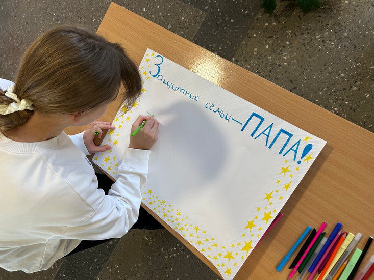 В этот день ребята делились своими чувствами — писали на большом плакате слова благодарности, признания и любви своим папам. Такие простые, но искренние слова создавали особую атмосферу тепла и единства. Ведь важно помнить и говорить близким людям о том, как мы их ценим и любим.