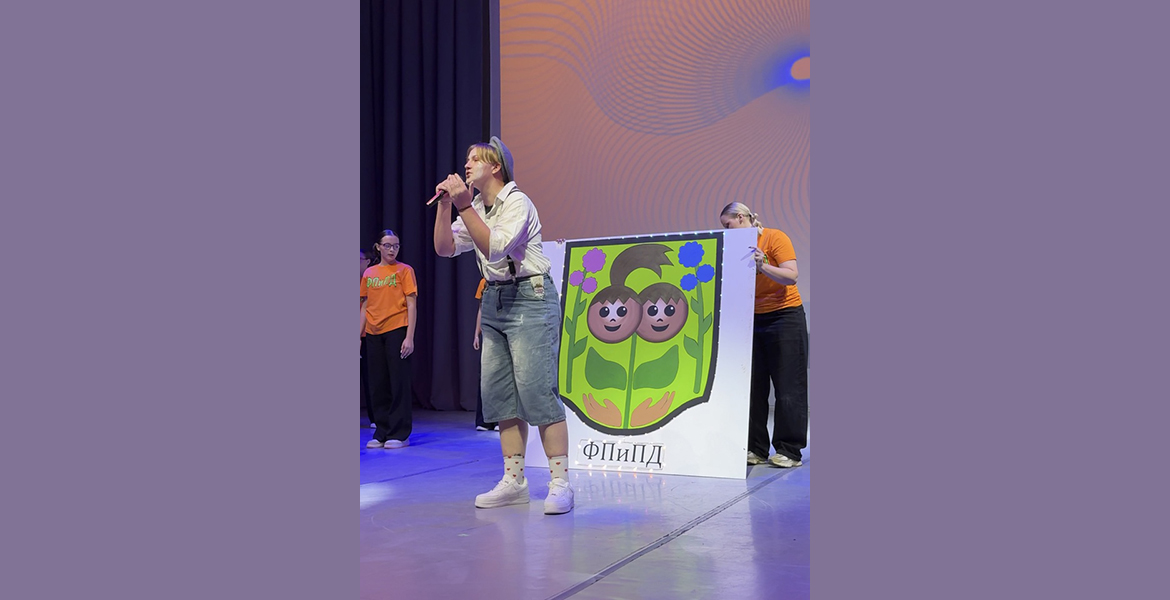 Творческий номер представлял собой зажигательный танец большой команды, которая защищала главную идею, выраженную в логотипе ФПиПД — счастливое детство, которое будет обеспечено в нашей стране усилиями студентов и выпускников факультета педагогики и психологии детства.