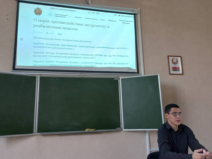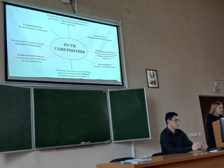 29 октября 2025 года на факультете педагогики и психологии детства состоялась встреча студентов 1 курса с представителями молодёжной (студенческой) информационной группы факультета экономики и права. Перед первокурсниками выступили председатель студенческого совета университета, студентка 3 курса специальности «Правоведение» Демидькова Анна и студент 4 курса специальности «Правоведение» Агеев Антон. Они объяснили слушателям, чем административная ответственность отличается от уголовной ответственности, какие наказания предусмотрены законодательством Республики Беларусь за незаконное распространение наркотиков, мошенничество, экстремизм. Речь шла также о кибербезопасности: фишинге и вишинге. В ходе информационной встречи были затронуты и иные вопросы, связанные с профилактикой правонарушений и преступлений в молодёжной среде.