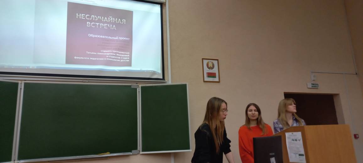 4 декабря 2025 года на факультете педагогики и психологии детства продолжил свою работу образовательный проект «Неслучайная встреча». Перед первокурсниками факультета педагогики и психологии детства выступили финалисты университетского этапа республиканского конкурса «100 идей для Беларуси», который состоялся в конце ноября текущего календарного года.