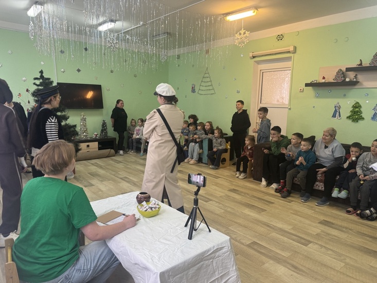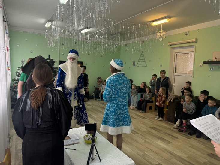 22 декабря 2025 года студенты факультета педагогики и психологии детства по зову сердца приехали в гости к воспитанникам ГУО «Социально-педагогический центр Октябрьского района г. Могилева». Мы привезли с собой целый чемодан добра, песен и смеха — нашу новогоднюю сказку «Простоквашино. Операция «Ёлочный переполох»! Это было наш искренний душевный порыв — подарить детям праздник, которого они ждут. Видеть их горящие глаза, слышать звонкий смех и аплодисменты — бесценно. Такие моменты напоминают, почему мы выбрали профессию, связанную с детьми. Спасибо Центру за тёплый приём и возможность сделать этот предновогодний день немного волшебнее!