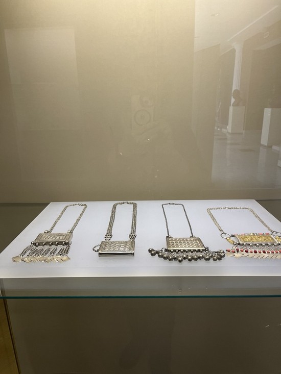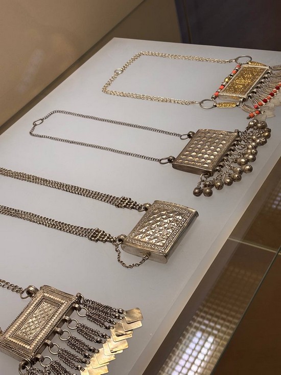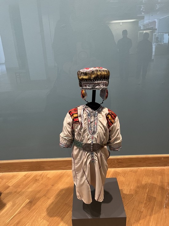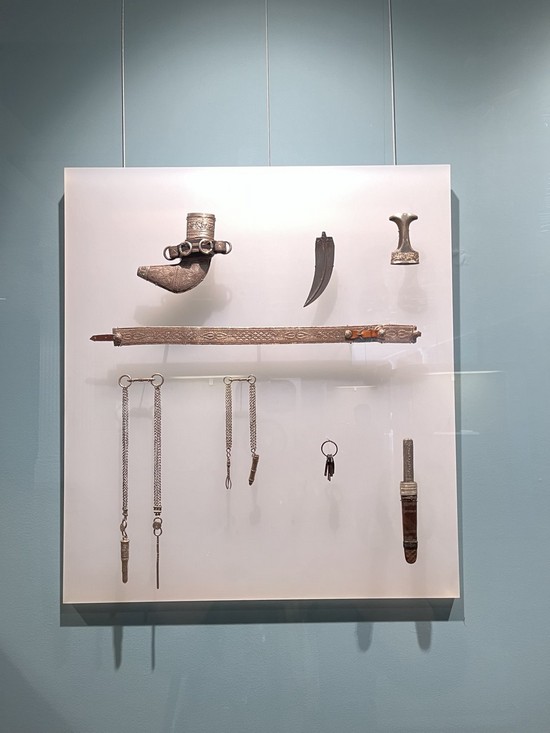 Различные разделы экспозиции ознакомили ребят с разнообразными гранями оманской культуры, еë обычаями и традициями; это изысканные произведения оманских мастеров, выполненные из драгоценного металла, парадные кинжалы, пояса, амулеты, ювелирные украшения и разнообразные аксессуары.