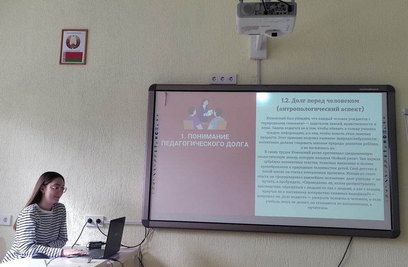 С интересом студенты анализировали художественные фильмы осуществляя поиск деонтологической составляющей в сюжетной линии кинофильмов. Работая в виртуальной лаборатории педагогической деонтологии, будущие специалисты смогли примерить роль эксперта в оценке ситуаций, представленных в кейс-тренажерах, спрогнозировать долгосрочные последствия и предложить решение проблемных ситуаций с позиции педагогической деонтологии.