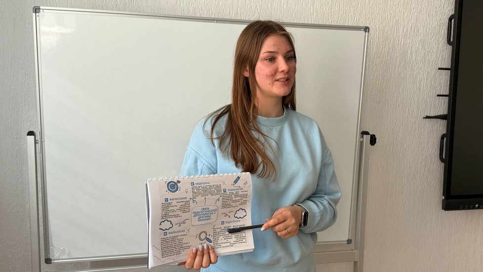 Студенты представили портфолио как итог освоения учебной дисциплины «Педагогическая деонтология». В процессе работы над портфолио был разработан индивидуальный маршрут формирования деонтологической компетентности будущего педагога дошкольного образования, написано эссе, представлена карта ценностей, проанализированы статьи отечественных и зарубежных авторов по вопросам педагогического долга и деонтологической составляющей в профессиональной подготовке педагогов дошкольного образования, подготовлены презентации.