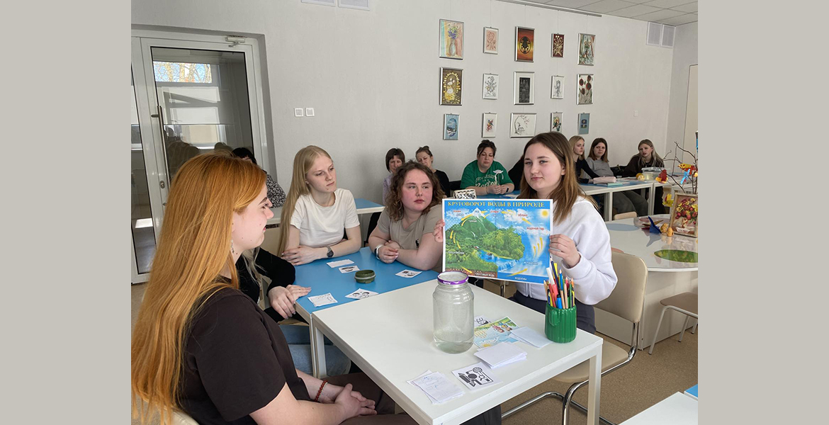 Кульминацией стала импровизированная «Лаборатория». Студенты не просто рассказывали теорию — они показывали. Кто-то объяснял детям (роль детей исполняли соседи по парте) схему круговорота воды в природе, кто- продлевал жизнь пластиковой бутылке, кто-то, экспериментируя с яйцом, показал важность ухода за зубами и полостью рта, кто-то с помощью простого апельсина искал ответ на вопрос «Почему апельсин в кожуре не тонет, а без кожуры опускается на дно миски?».