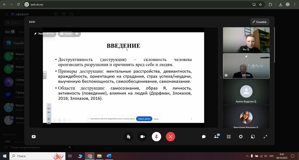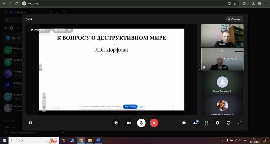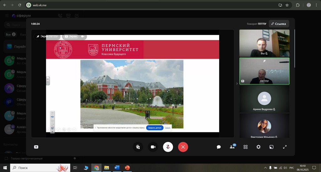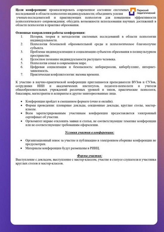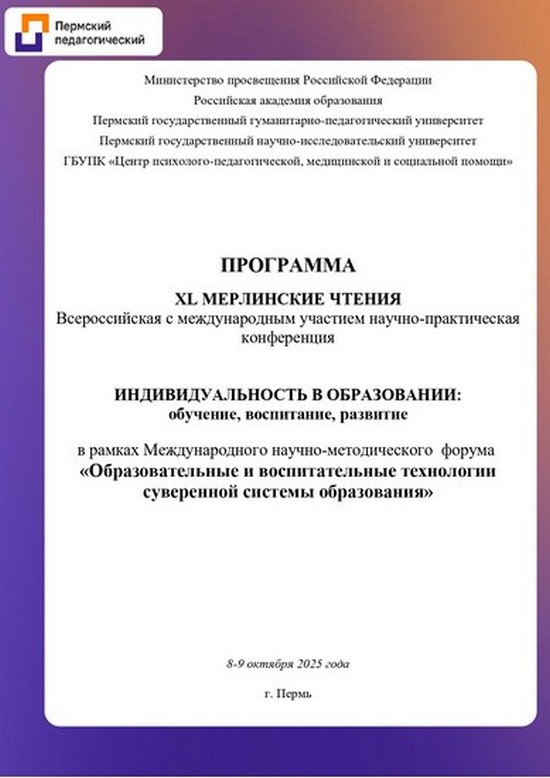 8 и 9 октября в стенах Пермского государственного гуманитарно-педагогического университета (г. Пермь) работает Всероссийская с международным участием научно-практическая конференция XL Мерлинские чтения «Индивидуальность в образовании: обучение, воспитание, развитие» в рамках Международного научно-методического форума «Образовательные и воспитательные технологии суверенной системы образования».