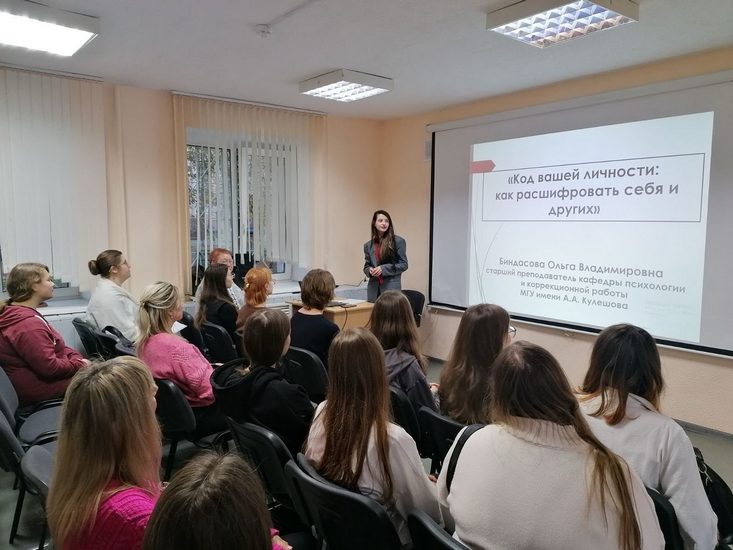 15 октября 2025 года в Могилёвской городской библиотеке им. К. Маркса состоялся психологический лекторий. Открытую лекцию на тему «Код вашей личности: как расшифровать себя и других» провела старший преподаватель кафедры психологии и коррекционной работы Ольга Владимировна Биндасова.