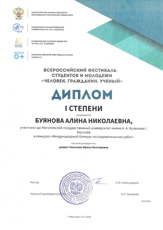 Студенты четвертого курса, обучающиеся по специальности «Психология», приняли заочное участие во Всероссийском фестивале студентов и молодежи «Человек. Гражданин. Ученый», который был проведен 15 ноября 2025 года на базе Чувашского государственного университета имени И. Н. Ульянова.